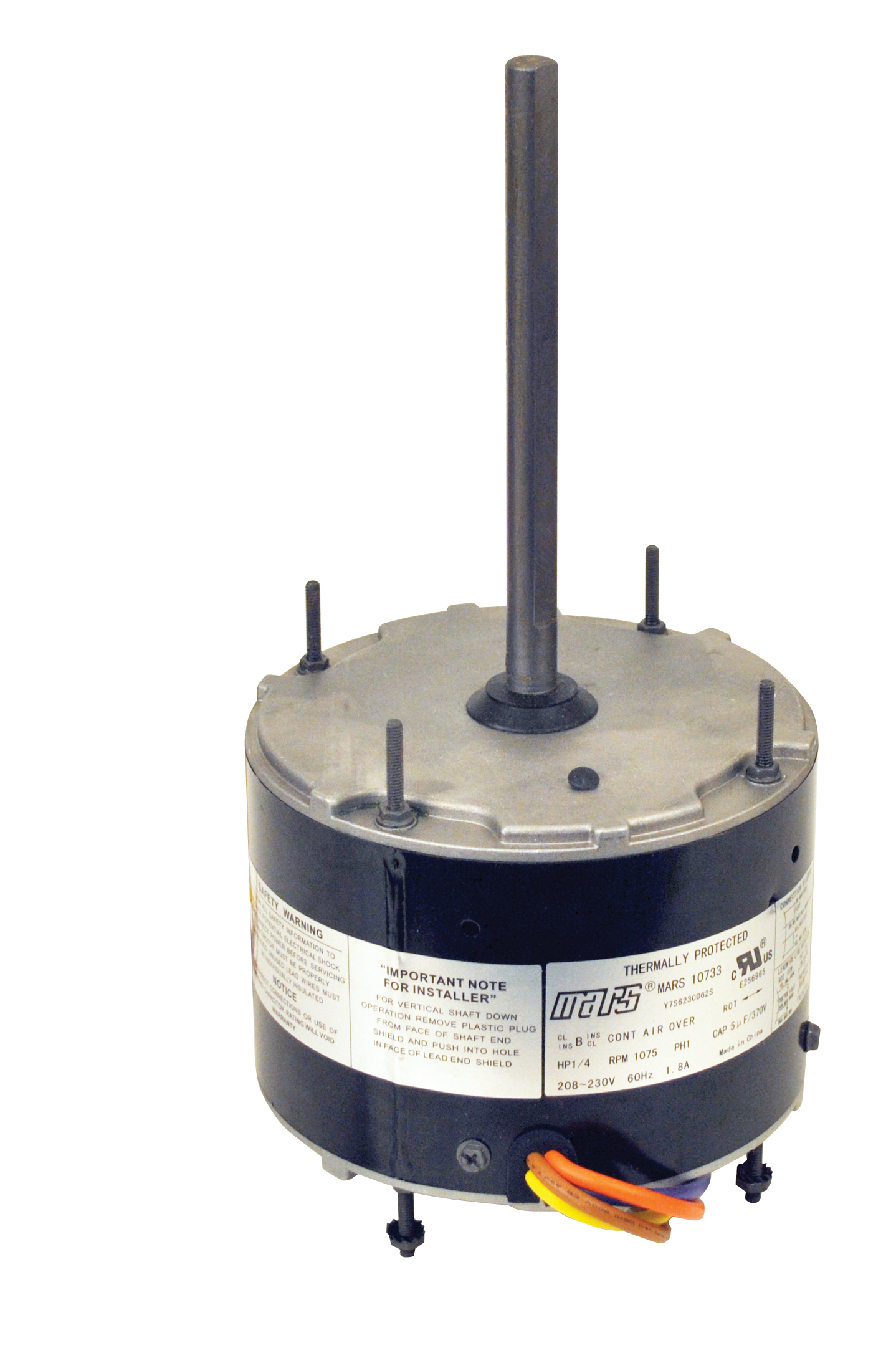 Vertical Shaft Up or Shaft Down Weep hole in each end shield Rheem mounting holes w/screws installed Water slinger on shaft Double full flatted shaft Thermally Protected Extended Studs/Belly Band/Mounting Holes