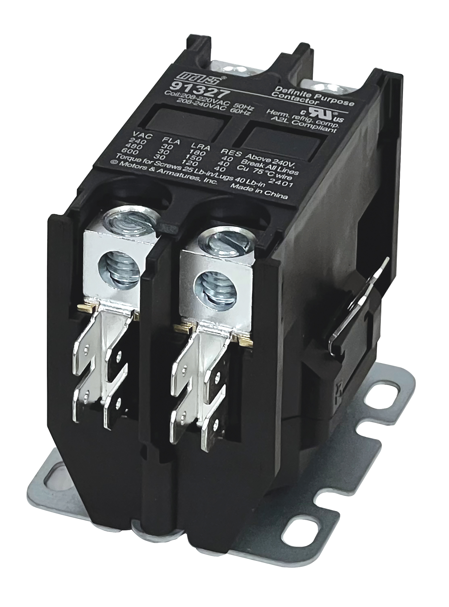 Contactor Type Definite Purpose No. of Poles 2 FLA Inductive 30 FLA Resistive 40 Coil Voltage 208-240 Lug or Screw Terminal Box Lug Standards UL